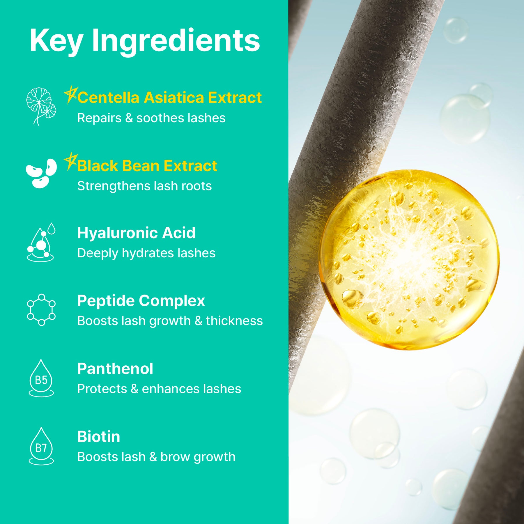 - Peptides – Support fuller, thicker lashes and brows.