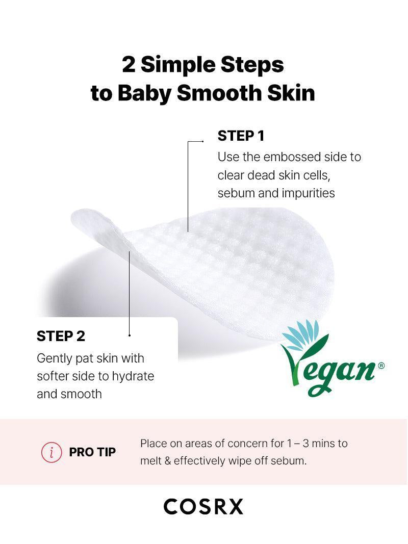 - After cleansing, swipe the embossing side across the face, avoiding the eye area.