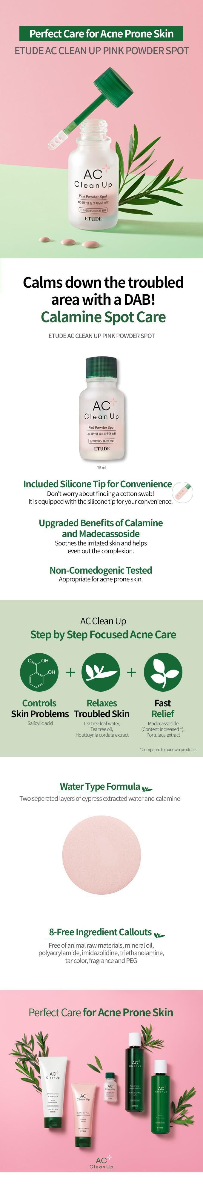 The Etude House AC Clean Up Pink Powder Spot is a targeted acne treatment designed to calm, soothe, and reduce blemishes. This dual-layer formula features a pink powder sediment that works overnight to minimize spots while controlling excess oil and calming inflammation.