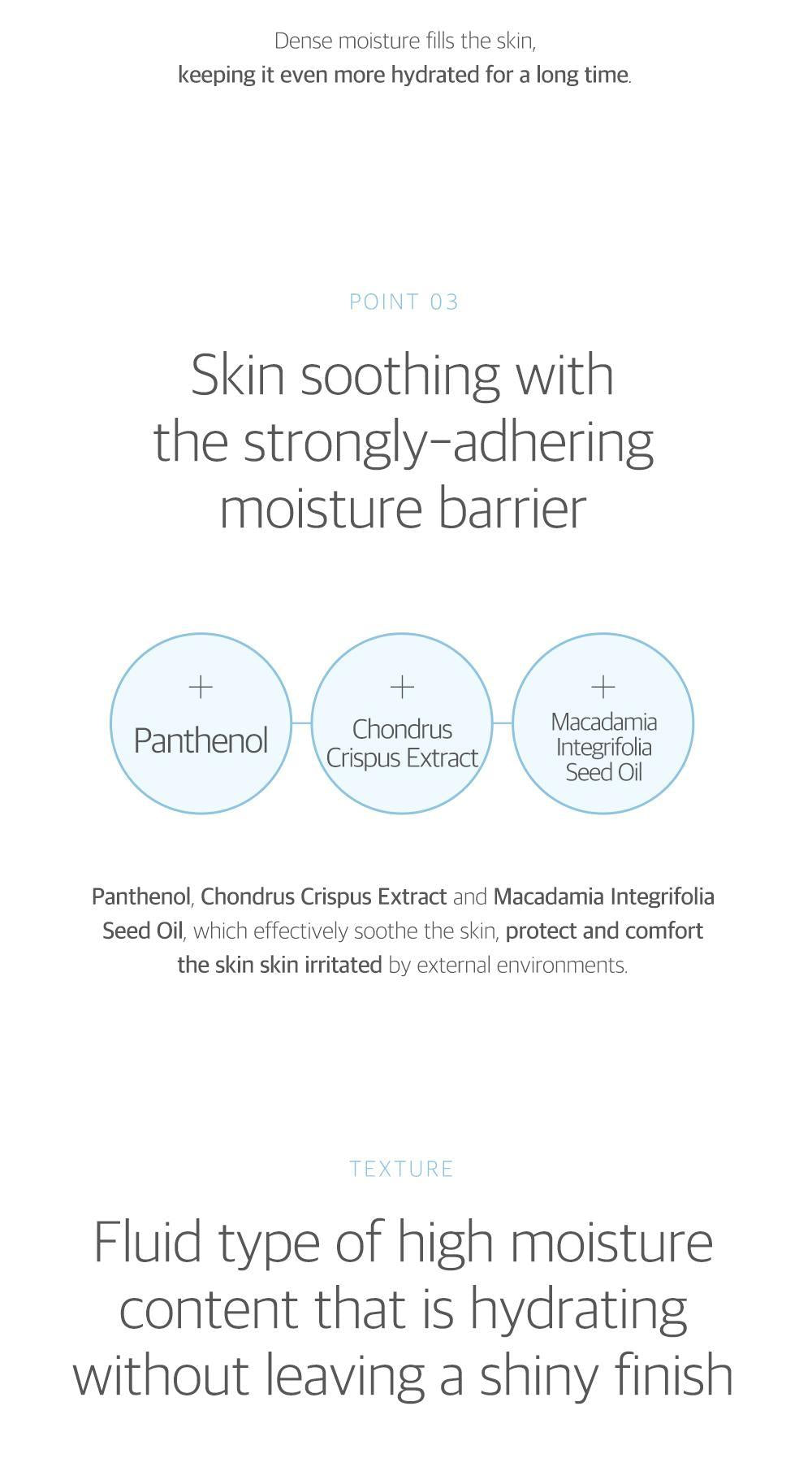 Purified Water, Glycerin, Macadamia Oil, 1,2-Hexanediol, Pentylene Glycol, Jojoba Esters, Chondrus Crispus Extract, Saccharum Officinarum (Sugarcane) Extract, Sea Water, Hyaluronic Acid, Hydrolyzed Hyaluronic Acid, Sodium Hyaluronate, Polyglyceryl-3 Methylglucose Distearate, Glyceryl Stearate, Hydrogenated Polydecene, Hydroxyethyl Acrylate/Sodium Acryloyldimethyl Taurate Copolymer, Caprylyl Glycol, Tromethamine, Sodium Phytate, Panthenol, Squalane, Butylene Glycol, Tocopherol, Sodium Carboxymethyl Beta-Glucan, Ethylhexylglycerin, Cetearyl Alcohol, Carbomer.