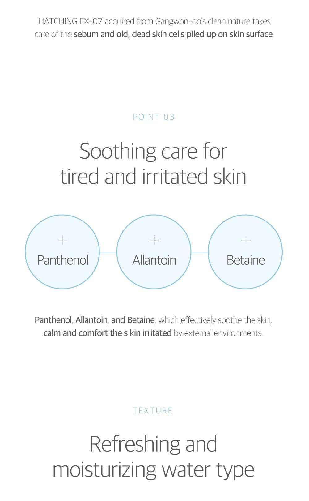 - The mineral-rich Dokdo Island water revitalizes dull, tired-looking skin, giving it a fresh appearance.
